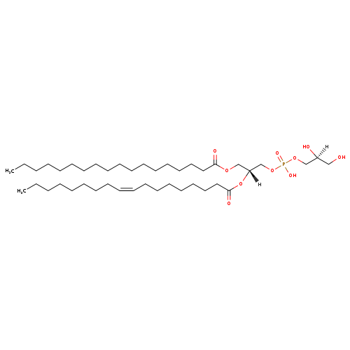 | YMDB01213 | PG(18:0/18:1(9Z)) 66322-31-4 | [(2S)-2,3-dihydroxypropoxy][(2R)-2-[(9Z)-octadec-9-enoyloxy]-3-(octadecanoyloxy)propoxy]phosphinic acid | C42H81O10P 777.0603 | |
