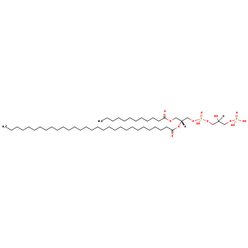 | YMDB11644 | 1-MLCL(0:0/10:0/15:0/27:0) | [(2S)-3-({[(2R)-2-(decanoyloxy)-3-hydroxypropoxy](hydroxy)phosphoryl}oxy)-2-hydroxypropoxy][(2R)-2-(heptacosanoyloxy)-3-(pentadecanoyloxy)propoxy]phosphinic acid | C61H120O16P2 1171.563 | |