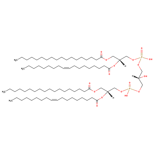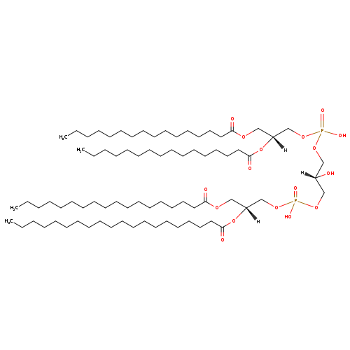 | YMDB10890 | CL(16:0/16:0/18:0/20:0) | [(2S)-3-({[(2R)-2,3-bis(hexadecanoyloxy)propoxy](hydroxy)phosphoryl}oxy)-2-hydroxypropoxy][(2R)-2-(icosanoyloxy)-3-(octadecanoyloxy)propoxy]phosphinic acid | C79H154O17P2 1438.032 | |