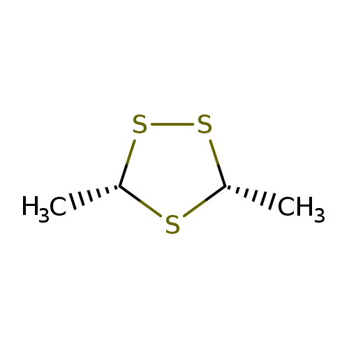 | YMDB01456 | cis-3,5-Dimethyl-1,2,4-trithiolane 5616-51-3 | (3R,5S)-3,5-dimethyl-1,2,4-trithiolane | C4H8S3 152.301 | |