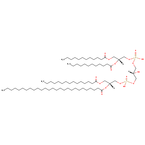 | YMDB04755 | CL(12:0/12:0/15:0/27:0) | [(2S)-3-({[(2R)-2,3-bis(dodecanoyloxy)propoxy](hydroxy)phosphoryl}oxy)-2-hydroxypropoxy][(2R)-2-(heptacosanoyloxy)-3-(pentadecanoyloxy)propoxy]phosphinic acid | C75H146O17P2 1381.924 | |