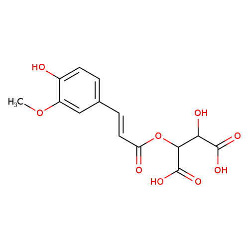 | YMDB01693 | Fertaric acid | 2-hydroxy-3-{[(2E)-3-(4-hydroxy-3-methoxyphenyl)prop-2-enoyl]oxy}butanedioic acid | C14H14O9 326.2556 | |