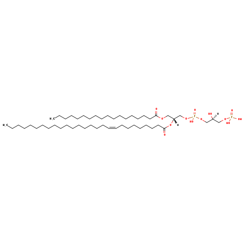 | YMDB14485 | PGP(18:0/27:1(9Z)) | [(2S)-3-({[(2R)-2-[(9Z)-heptacos-9-enoyloxy]-3-(octadecanoyloxy)propoxy](hydroxy)phosphoryl}oxy)-2-hydroxypropoxy]phosphonic acid | C51H100O13P2 983.296 | |
