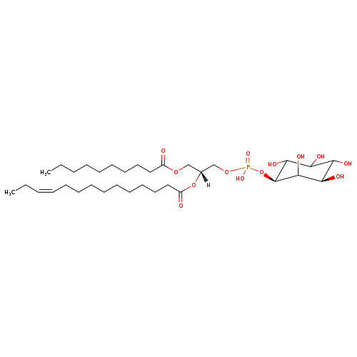 | YMDB15300 | PI(10:0/14:1(11Z)) | [(2R)-3-(decanoyloxy)-2-[(11Z)-tetradec-11-enoyloxy]propoxy]({[(1s,3R)-2,3,4,5,6-pentahydroxycyclohexyl]oxy})phosphinic acid | C33H61O13P 696.812 | |