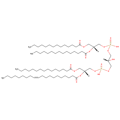 | YMDB06606 | CL(14:0/14:0/16:0/26:0) | [(2S)-3-({[(2R)-2,3-bis(tetradecanoyloxy)propoxy](hydroxy)phosphoryl}oxy)-2-hydroxypropoxy][(2R)-2-(hexacosanoyloxy)-3-(hexadecanoyloxy)propoxy]phosphinic acid | C79H154O17P2 1438.032 | |