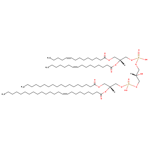 | YMDB10958 | CL(16:0/16:1(11Z)/18:1(9Z)/18:1(9Z)) | [(2R)-2,3-bis[(9Z)-octadec-9-enoyloxy]propoxy][(2S)-3-({[(2R)-2-[(11Z)-hexadec-11-enoyloxy]-3-(hexadecanoyloxy)propoxy](hydroxy)phosphoryl}oxy)-2-hydroxypropoxy]phosphinic acid | C77H144O17P2 1403.93 | |