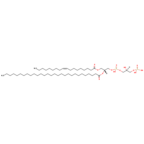 | YMDB10959 | CL(16:0/16:1(11Z)/18:1(9Z)/20:0) | [(2S)-3-({[(2R)-2-[(11Z)-hexadec-11-enoyloxy]-3-(hexadecanoyloxy)propoxy](hydroxy)phosphoryl}oxy)-2-hydroxypropoxy][(2R)-2-(icosanoyloxy)-3-[(9Z)-octadec-9-enoyloxy]propoxy]phosphinic acid | C79H150O17P2 1434.0 | |