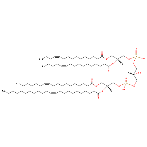 | YMDB11020 | CL(16:0/16:1(9Z)/18:1(9Z)/18:1(9Z)) | [(2R)-2,3-bis[(9Z)-octadec-9-enoyloxy]propoxy][(2S)-3-({[(2R)-2-[(9Z)-hexadec-9-enoyloxy]-3-(hexadecanoyloxy)propoxy](hydroxy)phosphoryl}oxy)-2-hydroxypropoxy]phosphinic acid | C77H144O17P2 1403.93 | |