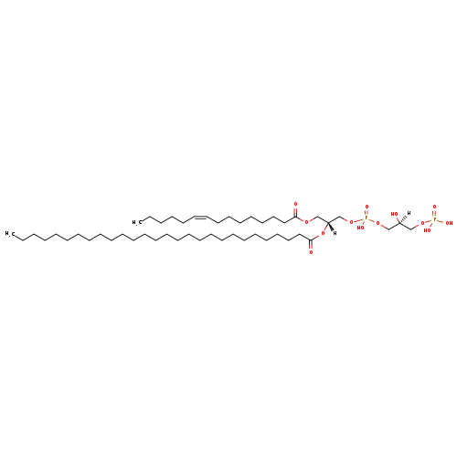 | YMDB12063 | 2-MLCL(15:0/16:0/26:0/0:0) | [(2R)-3-({[(2R)-3-(hexacosanoyloxy)-2-hydroxypropoxy](hydroxy)phosphoryl}oxy)-2-hydroxypropoxy][(2R)-2-(hexadecanoyloxy)-3-(pentadecanoyloxy)propoxy]phosphinic acid | C66H130O16P2 1241.698 | |