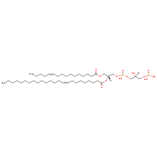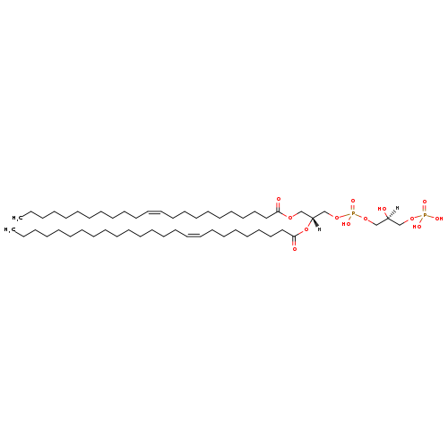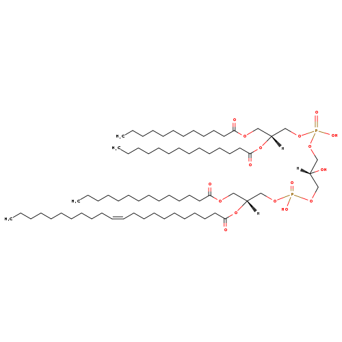 | YMDB03155 | CL(10:0/14:1(11Z)/16:0/24:1(11Z)) | [(2S)-3-({[(2R)-3-(decanoyloxy)-2-[(11Z)-tetradec-11-enoyloxy]propoxy](hydroxy)phosphoryl}oxy)-2-hydroxypropoxy][(2R)-3-(hexadecanoyloxy)-2-[(11Z)-tetracos-11-enoyloxy]propoxy]phosphinic acid | C73H138O17P2 1349.838 | |