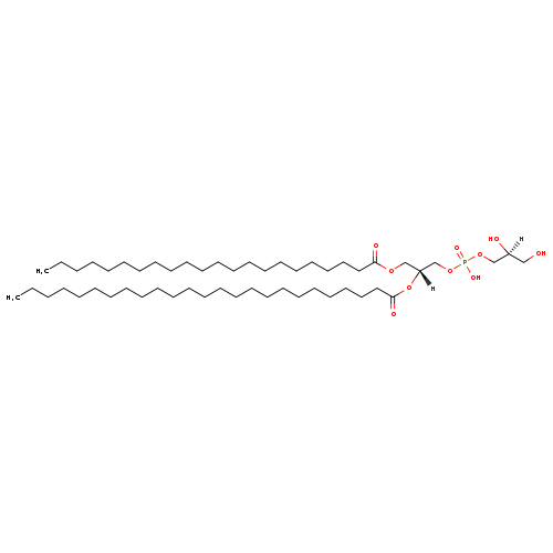 | YMDB14674 | PGP(23:1(11Z)/25:1(9Z)) | [(2S)-2-hydroxy-3-({hydroxy[(2R)-2-[(9Z)-pentacos-9-enoyloxy]-3-[(11Z)-tricos-11-enoyloxy]propoxy]phosphoryl}oxy)propoxy]phosphonic acid | C54H104O13P2 1023.361 | |