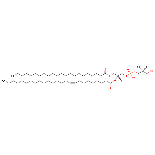 | YMDB14420 | PGP(16:1(11Z)/25:1(11Z)) | [(2S)-3-({[(2R)-3-[(11Z)-hexadec-11-enoyloxy]-2-[(11Z)-pentacos-11-enoyloxy]propoxy](hydroxy)phosphoryl}oxy)-2-hydroxypropoxy]phosphonic acid | C47H90O13P2 925.172 | |