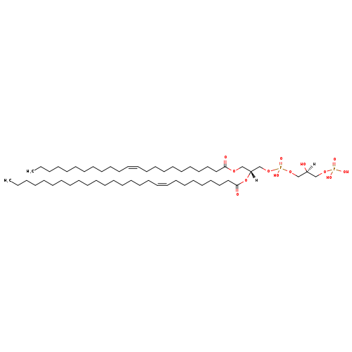 | YMDB02390 | CL(10:0/10:0/16:1(11Z)/26:1(9Z)) | [(2S)-3-({[(2R)-2,3-bis(decanoyloxy)propoxy](hydroxy)phosphoryl}oxy)-2-hydroxypropoxy][(2R)-2-[(10Z)-heptacos-10-enoyloxy]-3-[(11Z)-hexadec-11-enoyloxy]propoxy]phosphinic acid | C72H136O17P2 1335.811 | |