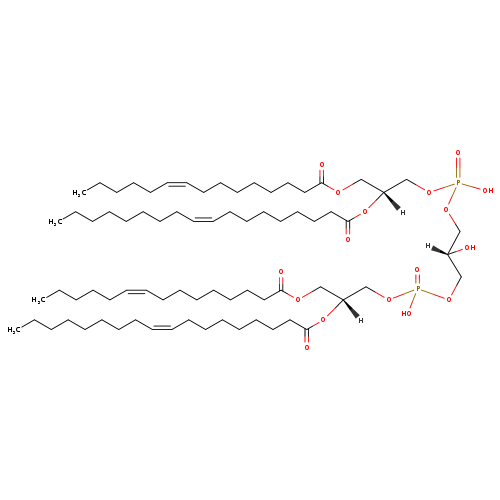 | YMDB11350 | CL(16:1(9Z)/18:0/18:1(9Z)/18:1(9Z)) | [(2R)-2,3-bis[(9Z)-octadec-9-enoyloxy]propoxy][(2S)-3-({[(2R)-3-[(9Z)-hexadec-9-enoyloxy]-2-(octadecanoyloxy)propoxy](hydroxy)phosphoryl}oxy)-2-hydroxypropoxy]phosphinic acid | C79H148O17P2 1431.984 | |
