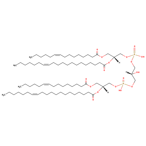| YMDB10848 | CL(15:1(9Z)/20:1(13Z)/15:1(9Z)/20:1(13Z)) | [2-hydroxy-3-({hydroxy[(2R)-2-[(13Z)-icos-13-enoyloxy]-3-[(9Z)-pentadec-9-enoyloxy]propoxy]phosphoryl}oxy)propoxy][(2R)-2-[(13Z)-icos-13-enoyloxy]-3-[(9Z)-pentadec-9-enoyloxy]propoxy]phosphinic acid | C79H146O17P2 1429.968 | |