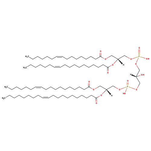 | YMDB10337 | CL(15:1(11Z)/15:1(11Z)/18:1(11Z)/22:1(11Z)) | [(2S)-3-({[(2R)-2,3-bis[(11Z)-pentadec-11-enoyloxy]propoxy](hydroxy)phosphoryl}oxy)-2-hydroxypropoxy][(2R)-2-[(11Z)-docos-11-enoyloxy]-3-[(11Z)-octadec-11-enoyloxy]propoxy]phosphinic acid | C79H146O17P2 1429.968 | |