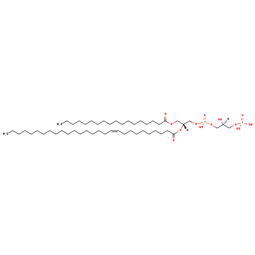 | YMDB14488 | PGP(18:0/28:1(9Z)) | [(2S)-2-hydroxy-3-({hydroxy[(2R)-2-[(10Z)-octacos-10-enoyloxy]-3-(octadecanoyloxy)propoxy]phosphoryl}oxy)propoxy]phosphonic acid | C52H102O13P2 997.323 | |