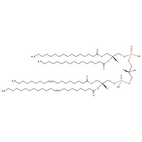 | YMDB09883 | CL(15:0/15:0/16:1(11Z)/26:1(9Z)) | [(2S)-3-({[(2R)-2,3-bis(pentadecanoyloxy)propoxy](hydroxy)phosphoryl}oxy)-2-hydroxypropoxy][(2R)-2-[(10Z)-heptacos-10-enoyloxy]-3-[(11Z)-hexadec-11-enoyloxy]propoxy]phosphinic acid | C82H156O17P2 1476.081 | |