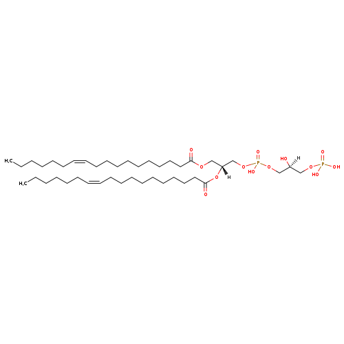 | YMDB11163 | CL(16:1(11Z)/16:1(9Z)/18:0/22:0) | [(2R)-3-({[(2R)-2-(docosanoyloxy)-3-(octadecanoyloxy)propoxy](hydroxy)phosphoryl}oxy)-2-hydroxypropoxy][(2R)-3-[(11Z)-hexadec-11-enoyloxy]-2-[(9Z)-hexadec-9-enoyloxy]propoxy]phosphinic acid | C81H154O17P2 1462.054 | |