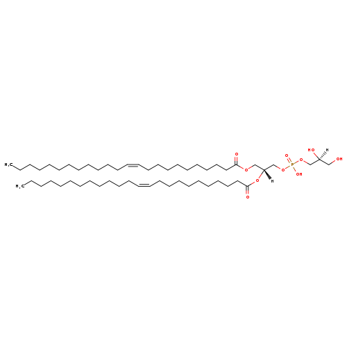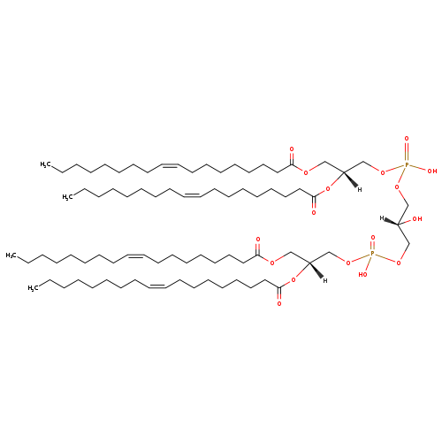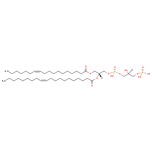 | YMDB11422 | CL(18:1(9Z)/18:1(9Z)/18:1(9Z)/18:1(9Z)) | [(2R)-2,3-bis[(9Z)-octadec-9-enoyloxy]propoxy][3-({[(2R)-2,3-bis[(9Z)-octadec-9-enoyloxy]propoxy](hydroxy)phosphoryl}oxy)-2-hydroxypropoxy]phosphinic acid | C81H150O17P2 1458.022 | |