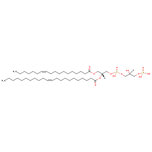 | YMDB10145 | CL(15:0/15:1(9Z)/18:0/22:1(9Z)) | [(2R)-2-[(9Z)-docos-9-enoyloxy]-3-(octadecanoyloxy)propoxy][(2S)-2-hydroxy-3-({hydroxy[(2R)-2-[(9Z)-pentadec-9-enoyloxy]-3-(pentadecanoyloxy)propoxy]phosphoryl}oxy)propoxy]phosphinic acid | C79H150O17P2 1434.0 | |
