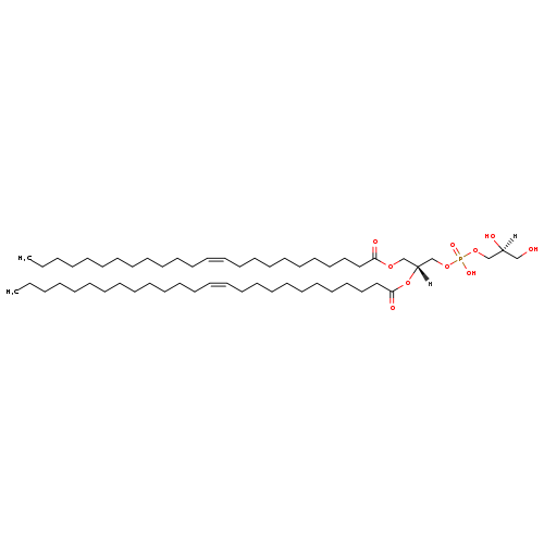 | YMDB14241 | PGP(14:1(11Z)/24:1(11Z)) | [(2S)-2-hydroxy-3-({hydroxy[(2R)-2-[(11Z)-tetracos-11-enoyloxy]-3-[(11Z)-tetradec-11-enoyloxy]propoxy]phosphoryl}oxy)propoxy]phosphonic acid | C44H84O13P2 883.091 | |