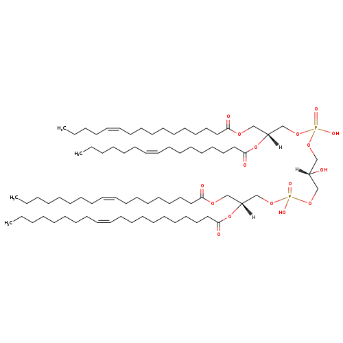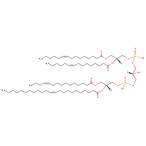 | YMDB07077 | CL(14:0/14:1(9Z)/18:1(9Z)/26:1(9Z)) | [(2R)-3-({[(2R)-2-[(10Z)-heptacos-10-enoyloxy]-3-[(9Z)-octadec-9-enoyloxy]propoxy](hydroxy)phosphoryl}oxy)-2-hydroxypropoxy][(2R)-2-[(9Z)-tetradec-9-enoyloxy]-3-(tetradecanoyloxy)propoxy]phosphinic acid | C82H154O17P2 1474.065 | |
