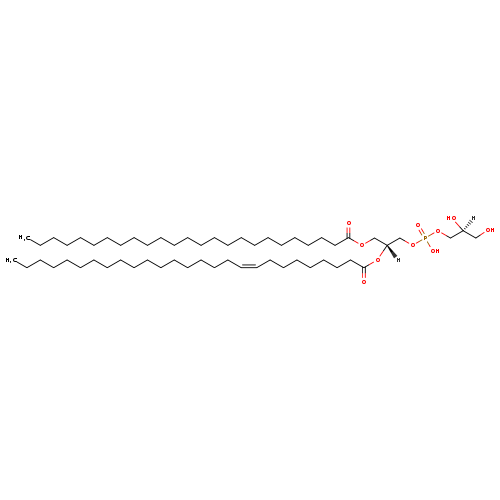 | YMDB14516 | PGP(18:1(11Z)/29:0) | [(2S)-2-hydroxy-3-({hydroxy[(2R)-2-(nonacosanoyloxy)-3-[(11Z)-octadec-11-enoyloxy]propoxy]phosphoryl}oxy)propoxy]phosphonic acid | C53H104O13P2 1011.35 | |