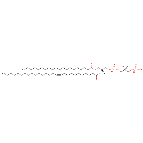 | YMDB04324 | CL(10:0/16:1(9Z)/16:1(9Z)/24:1(11Z)) | [(2R)-3-(decanoyloxy)-2-[(9Z)-hexadec-9-enoyloxy]propoxy][(2R)-3-({[(2R)-3-[(9Z)-hexadec-9-enoyloxy]-2-[(11Z)-tetracos-11-enoyloxy]propoxy](hydroxy)phosphoryl}oxy)-2-hydroxypropoxy]phosphinic acid | C75H140O17P2 1375.876 | |