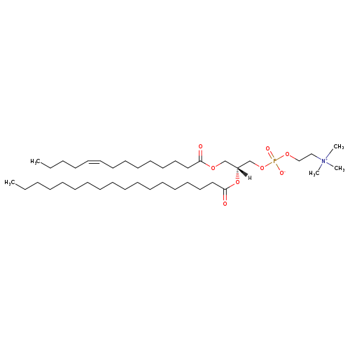 | YMDB01831 | PC(14:1(9Z)/18:0) | trimethyl(2-{[(2R)-2-(octadecanoyloxy)-3-[(9Z)-tetradec-9-enoyloxy]propyl phosphonato]oxy}ethyl)azanium | C40H78NO8P 732.023 | |