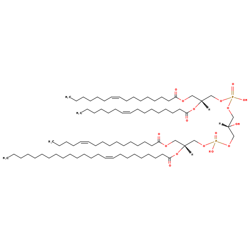 | YMDB11299 | CL(16:1(9Z)/16:1(9Z)/16:1(11Z)/24:1(9Z)) | [(2R)-2,3-bis[(9Z)-hexadec-9-enoyloxy]propoxy][(2R)-3-({[(2R)-3-[(11Z)-hexadec-11-enoyloxy]-2-[(9Z)-tetracos-9-enoyloxy]propoxy](hydroxy)phosphoryl}oxy)-2-hydroxypropoxy]phosphinic acid | C81H150O17P2 1458.022 | |