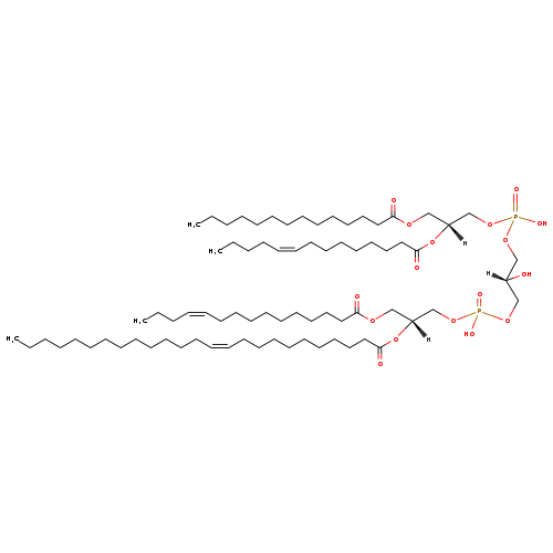 | YMDB06703 | CL(14:0/14:0/20:1(13Z)/24:0) | [(2S)-3-({[(2R)-2,3-bis(tetradecanoyloxy)propoxy](hydroxy)phosphoryl}oxy)-2-hydroxypropoxy][(2R)-3-[(13Z)-icos-13-enoyloxy]-2-(tetracosanoyloxy)propoxy]phosphinic acid | C81H156O17P2 1464.07 | |