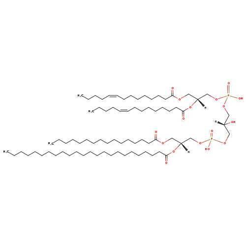 | YMDB08538 | CL(14:1(11Z)/16:1(11Z)/16:1(9Z)/22:0) | [(2R)-2-(docosanoyloxy)-3-[(9Z)-hexadec-9-enoyloxy]propoxy][(2S)-3-({[(2R)-2-[(11Z)-hexadec-11-enoyloxy]-3-[(11Z)-tetradec-11-enoyloxy]propoxy](hydroxy)phosphoryl}oxy)-2-hydroxypropoxy]phosphinic acid | C77H144O17P2 1403.93 | |