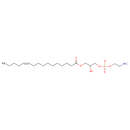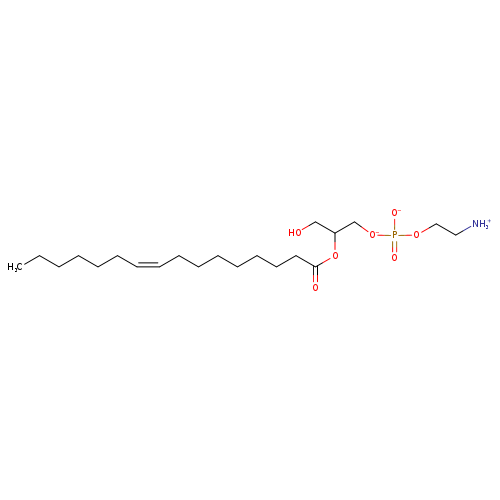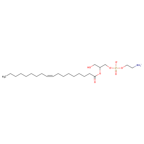| YMDB13325 | Lyso-PE(18:1(9Z)/0:0) | 1-[(2-azaniumylethyl phosphono)oxido]-3-hydroxypropan-2-yl (9Z)-octadec-9-enoate | C23H46NO7P 479.595 | |