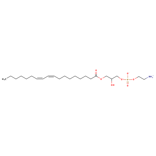 | YMDB13326 | Lyso-PE(18:2(9Z,11Z)/0:0) | 1-[(2-azaniumylethyl phosphono)oxido]-3-hydroxypropan-2-yl (9Z,11Z)-octadeca-9,11-dienoate | C23H44NO7P 477.579 | |