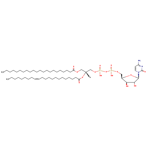 | YMDB12539 | CDP-DG(20:1(13Z)/23:1(9Z)) | {[(2R,3R,5R)-5-(4-amino-2-oxo-1,2-dihydropyrimidin-1-yl)-3,4-dihydroxyoxolan-2-yl]methoxy}({hydroxy[(2R)-3-[(13Z)-icos-13-enoyloxy]-2-[(9Z)-tricos-9-enoyloxy]propoxy]phosphoryl}oxy)phosphinic acid | C55H99N3O15P2 1104.351 |