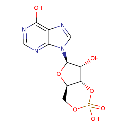 | YMDB00453 | 3',5'-cyclic IMP 3545-76-4 | (4aR,6R,7R,7aS)-2,7-dihydroxy-6-(6-hydroxy-9H-purin-9-yl)-hexahydro-2λ⁵-furo[3,2-d][1,3,2]dioxaphosphinin-2-one | C10H11N4O7P 330.1907 | |