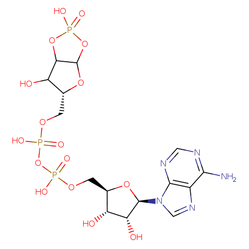 | YMDB00141 | ADP-ribose 1"-2" cyclic phosphate | {[(2R,3S,4R,5R)-5-(6-amino-9H-purin-9-yl)-3,4-dihydroxyoxolan-2-yl]methoxy}[({[(5R)-2,6-dihydroxy-2-oxo-tetrahydro-2H-2λ⁵-furo[2,3-d][1,3,2]dioxaphosphol-5-yl]methoxy}(hydroxy)phosphoryl)oxy]phosphinic acid | C15H22N5O16P3 621.2804 | |