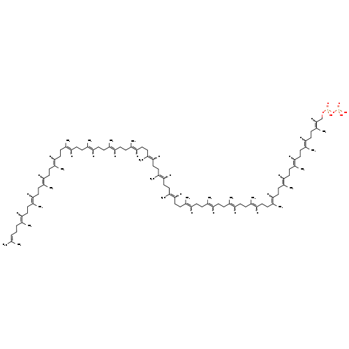 | YMDB00648 | docosaprenyl diphosphate | ({[(3,7,11,15,19,23,27,31,35,39,43,47,51,55,59,63,67,71,75,79,83,87-docosamethyloctaoctaconta-2,6,10,14,18,22,26,30,34,38,42,46,50,54,58,62,66,70,74,78,82,86-docosaen-1-yl)oxy](hydroxy)phosphoryl}oxy)phosphonic acid | C110H180O7P2 1676.5495 | |