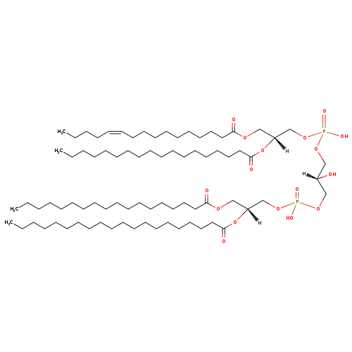 | YMDB09916 | CL(15:0/15:0/18:1(11Z)/24:0) | [(2S)-3-({[(2R)-2,3-bis(pentadecanoyloxy)propoxy](hydroxy)phosphoryl}oxy)-2-hydroxypropoxy][(2R)-3-[(11Z)-octadec-11-enoyloxy]-2-(tetracosanoyloxy)propoxy]phosphinic acid | C81H156O17P2 1464.07 | |