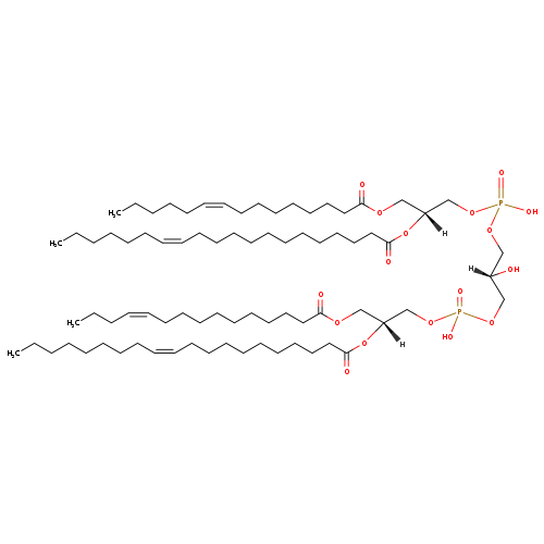 | YMDB11103 | CL(16:1(11Z)/16:1(11Z)/16:1(9Z)/22:1(11Z)) | [(2S)-3-({[(2R)-2,3-bis[(11Z)-hexadec-11-enoyloxy]propoxy](hydroxy)phosphoryl}oxy)-2-hydroxypropoxy][(2R)-2-[(11Z)-docos-11-enoyloxy]-3-[(9Z)-hexadec-9-enoyloxy]propoxy]phosphinic acid | C79H146O17P2 1429.968 | |