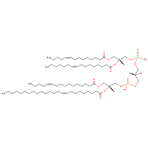 | YMDB10675 | CL(15:1(9Z)/15:1(9Z)/15:1(9Z)/25:1(9Z)) | [(2S)-3-({[(2R)-2,3-bis[(9Z)-pentadec-9-enoyloxy]propoxy](hydroxy)phosphoryl}oxy)-2-hydroxypropoxy][(2R)-2-[(9Z)-pentacos-9-enoyloxy]-3-[(9Z)-pentadec-9-enoyloxy]propoxy]phosphinic acid | C79H146O17P2 1429.968 | |