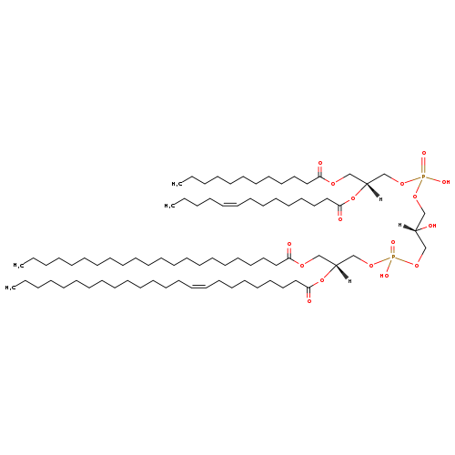 | YMDB04078 | CL(10:0/16:0/18:1(11Z)/28:1(11Z)) | [(2S)-3-({[(2R)-3-(decanoyloxy)-2-(hexadecanoyloxy)propoxy](hydroxy)phosphoryl}oxy)-2-hydroxypropoxy][(2R)-2-[(12Z)-octacos-12-enoyloxy]-3-[(11Z)-octadec-11-enoyloxy]propoxy]phosphinic acid | C81H154O17P2 1462.054 | |