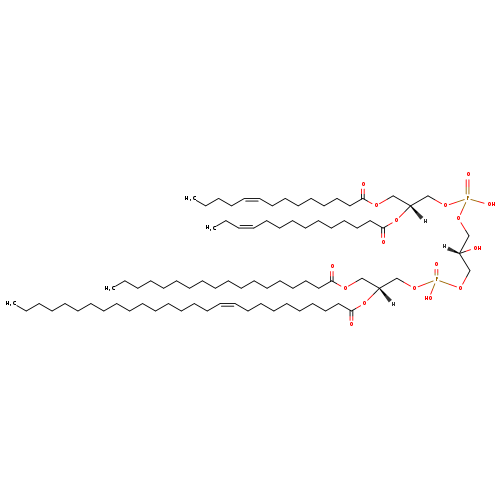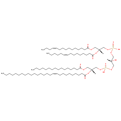 | YMDB04587 | CL(10:0/18:1(9Z)/18:1(11Z)/26:1(9Z)) | [(2R)-3-(decanoyloxy)-2-[(9Z)-octadec-9-enoyloxy]propoxy][(2R)-3-({[(2R)-2-[(10Z)-heptacos-10-enoyloxy]-3-[(11Z)-octadec-11-enoyloxy]propoxy](hydroxy)phosphoryl}oxy)-2-hydroxypropoxy]phosphinic acid | C82H154O17P2 1474.065 | |