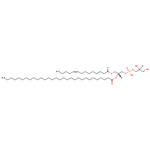 | YMDB14966 | PG(16:0/28:1(11Z)) | [(2S)-2,3-dihydroxypropoxy][(2R)-3-(hexadecanoyloxy)-2-[(12Z)-octacos-12-enoyloxy]propoxy]phosphinic acid | C50H97O10P 889.29 | |