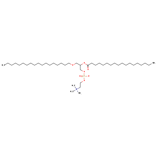 | YMDB02268 | PC(o-18:0/18:0) | trimethyl(2-{[2-(octadecanoyloxy)-3-(octadecyloxy)propyl phosphonato]oxy}ethyl)azanium | C44H90NO7P 776.1617 | |