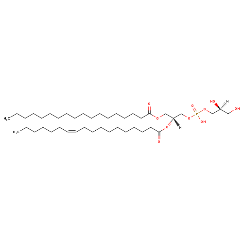 | YMDB01213 | PG(18:0/18:1(9Z)) 66322-31-4 | [(2S)-2,3-dihydroxypropoxy][(2R)-2-[(9Z)-octadec-9-enoyloxy]-3-(octadecanoyloxy)propoxy]phosphinic acid | C42H81O10P 777.0603 | |