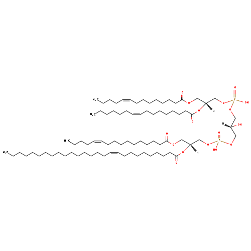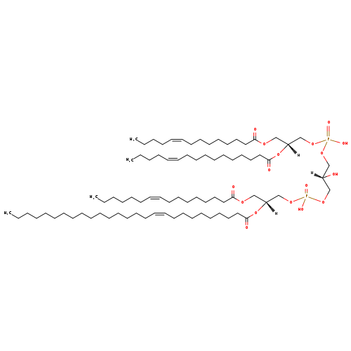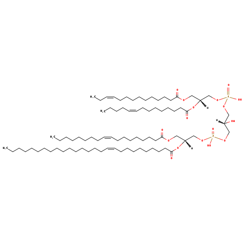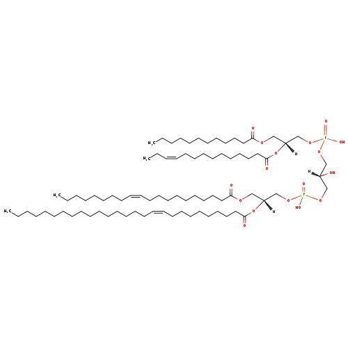 | YMDB10012 | CL(15:0/15:1(11Z)/16:1(9Z)/26:1(9Z)) | [(2R)-2-[(10Z)-heptacos-10-enoyloxy]-3-[(9Z)-hexadec-9-enoyloxy]propoxy][(2S)-2-hydroxy-3-({hydroxy[(2R)-2-[(11Z)-pentadec-11-enoyloxy]-3-(pentadecanoyloxy)propoxy]phosphoryl}oxy)propoxy]phosphinic acid | C82H154O17P2 1474.065 | |