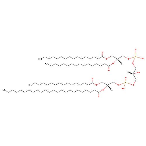 | YMDB10861 | CL(16:0/16:0/16:0/24:0) | [(2S)-3-({[(2R)-2,3-bis(hexadecanoyloxy)propoxy](hydroxy)phosphoryl}oxy)-2-hydroxypropoxy][(2R)-3-(hexadecanoyloxy)-2-(tetracosanoyloxy)propoxy]phosphinic acid | C81H158O17P2 1466.086 | |