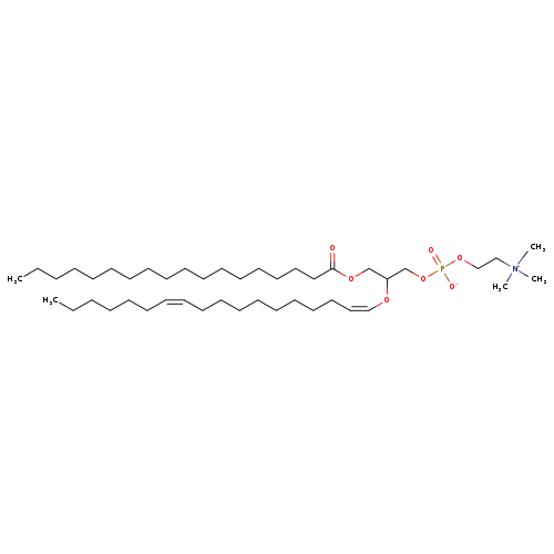 | YMDB01905 | PC(18:0/P-18:1(11Z)) | trimethyl[2-({2-[(1Z,11Z)-octadeca-1,11-dien-1-yloxy]-3-(octadecanoyloxy)propyl phosphonato}oxy)ethyl]azanium | C44H86NO7P 772.1299 |